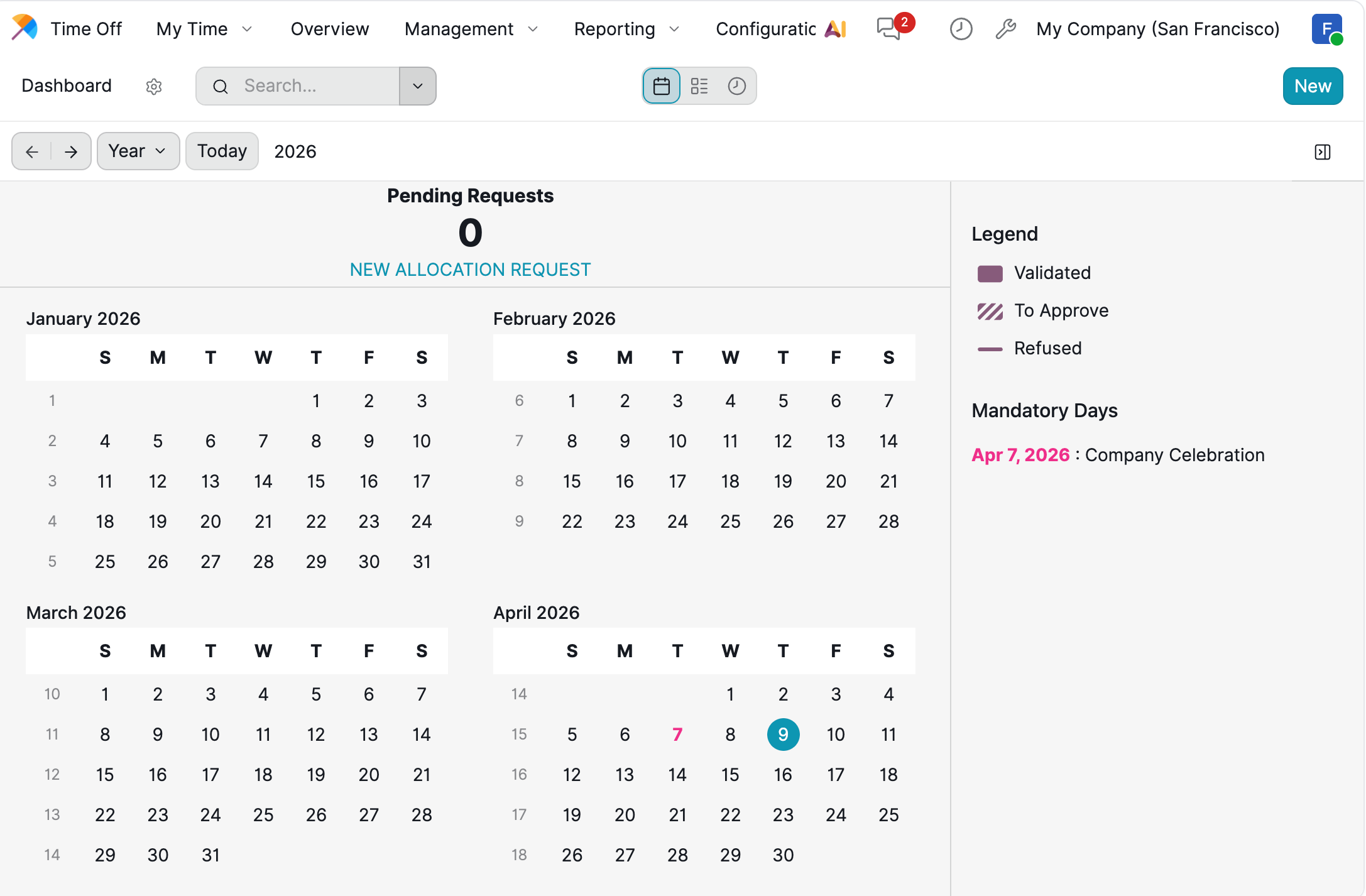 Let employees request time off, track their balances, and see their history in real time. Managers approve with one click. Attendance data flows directly into payroll.